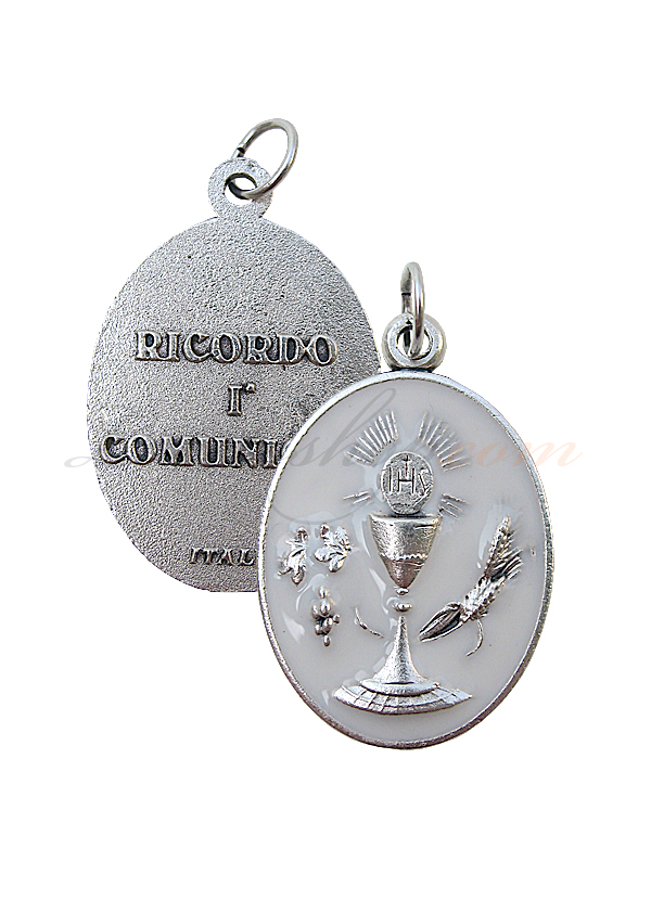 Medaglia ciondolo in metallo smaltato, disponibile dorata e argentata. Dimensioni 28 mm.